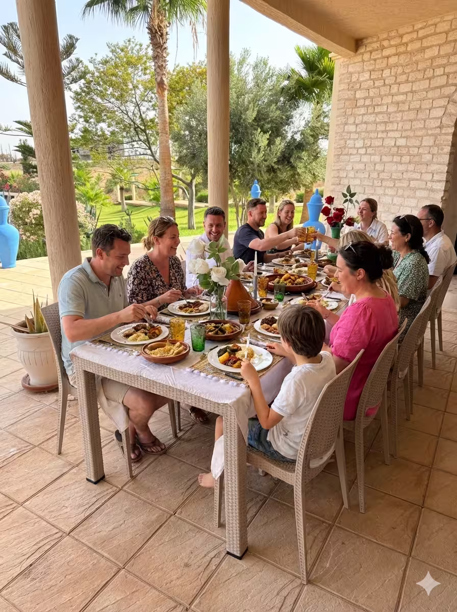La villa offre l’espace nécessaire pour se retrouver, partager les repas et prolonger les discussions, tout en préservant l’intimité de chacun. Ici, le groupe devient le cœur du séjour, sans empiéter sur l’espace de chacun.